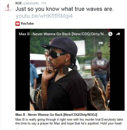 Todo comenzó con el cambio de título del disco –que sale en febrero-. Tras ello, Wiz Khalifa mencionó a Max B, otro artista del hip hop que utilizó la palabra “Waves” (Olas) continuamente dentro de su música, canciones, álbumes y su tendencia en general.