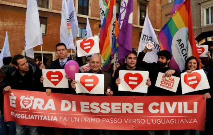 El jefe de gobierno italiano reconoció que Italia era el único país grande de Europa occidental sin un marco legal para las parejas del mismo sexo y a pesar de la oposición a la ley y a las protestas de la Iglesia católica aceleró su aprobación con el voto de confianza.