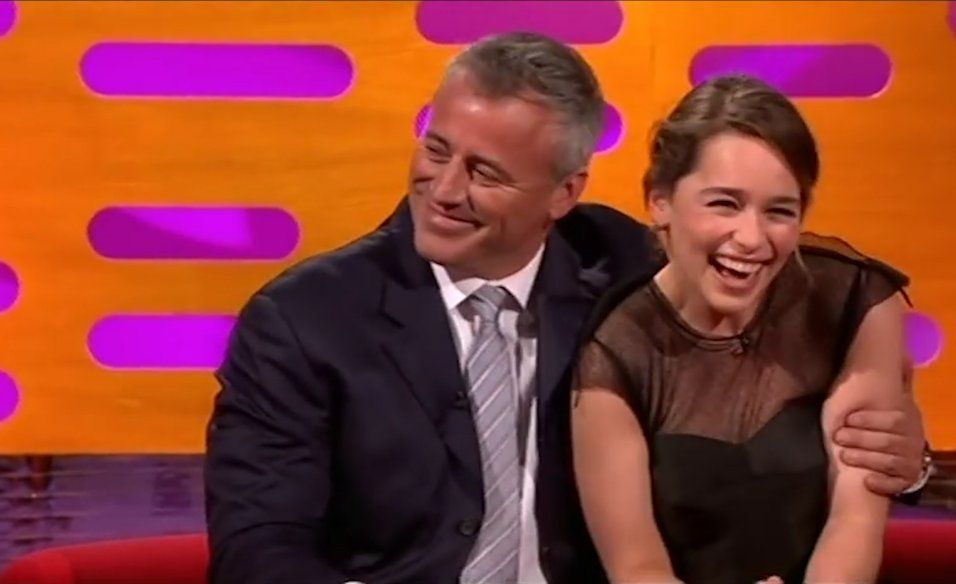 El conductor británico Graham Norton invitó a su programa a Emilia Clarke y Matt LeBlanc. Durante la entrevista compartida en YouTube la actriz de 29 años confesó ser fan de LeBlanc y sobre del personaje que interpretó en Friends.