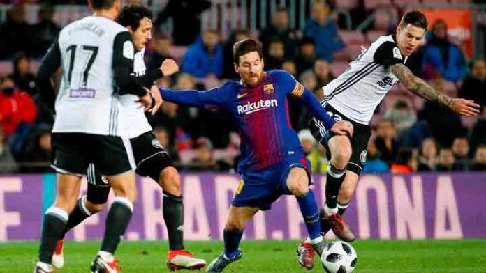19′: Messi es el hombre más peligroso del Barcelona. Rompe líneas y es un dolor de cabeza para los del Valencia.