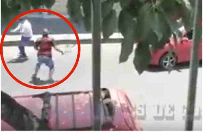 Como se muestra en el video , ambos se agreden y el taxista sufre amputación de un dedo.