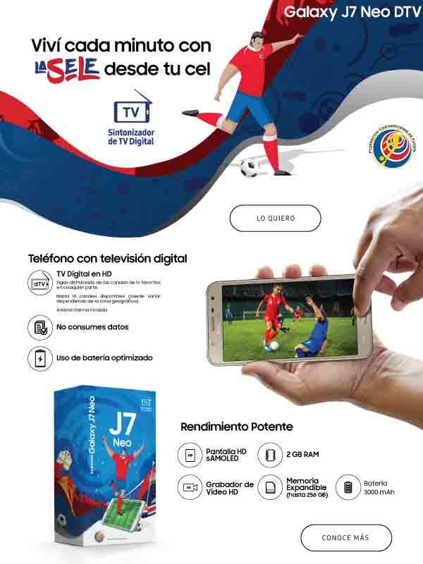 Costa Rica. – 21 de mayo de 2018 – Si usted no quiere perderse un solo minuto de la participación de la Selección de Costa Rica entre junio y julio, pero por diversos motivos no puede estar sentado frente a la pantalla de su televisor, Samsung le ofrece la opción de apoyar a la Tricolor desde su móvil y sin costo alguno.