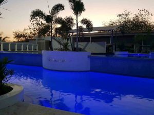 * Bar dentro de la piscina con maquina de hielo y 11 bancos dentro del agua