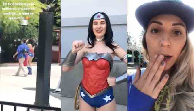 Ortiz se pegó un tour en Los Ángeles, Estados Unidos, y mientras disfrutaba de una atracción turística, se encontró a una sexi mujer vestida de la Mujer Maravilla, detalle que le llamó la atención y compartió en redes sociales.