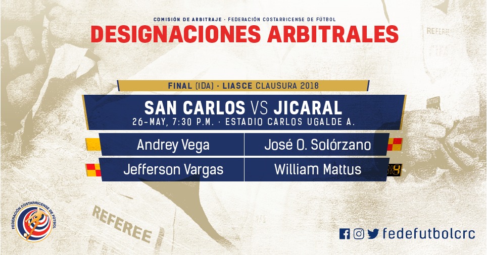 El silbatero Andrey Vega será el encargado de impartir justicia en la Final Ida del torneo de Liga de Ascenso entre A.D San Carlos y Jiracal Sercoba.