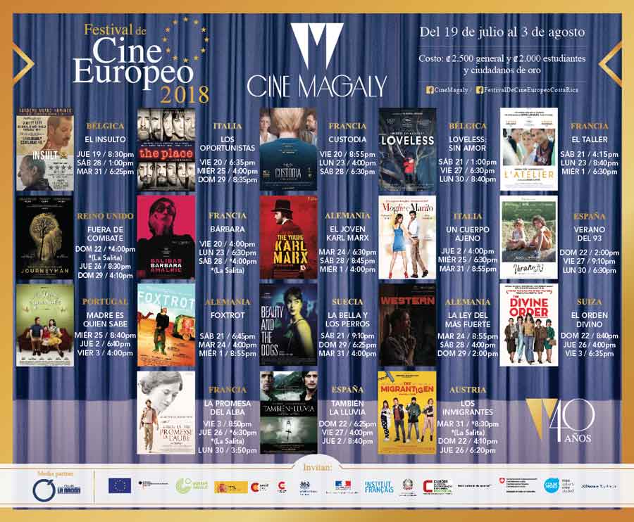 «Al celebrarse este año el cuadragésimo aniversario del Cine Magaly, queremos conmemorarlo con una edición especial del evento más esperado del año: El XVIII Festival de Cine Europeo que dará inicio el próximo 19 de julio. La película seleccionada para su apertura, ha sido escogida con el ánimo de dejar una huella, un mensaje de entendimiento y esperanza entre los seres humanos que piensan o sienten diferente: “EL INSULTO”, Nominada al Oscar de la Academia como la Mejor Película de Habla no Inglesa del Año.