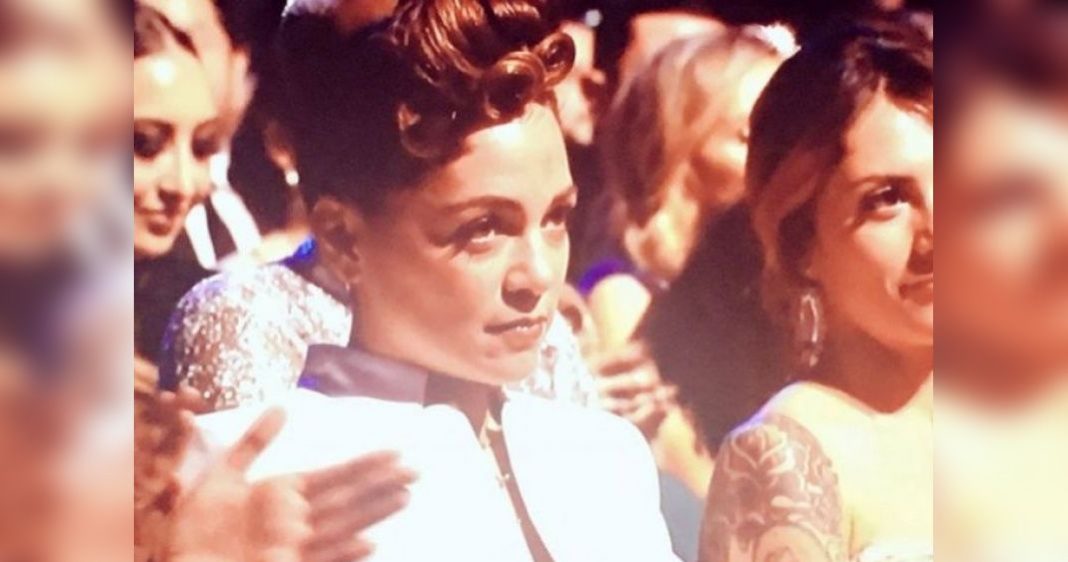 La cámara enfocó a la cantante en el momento en el que hacía un aparente gesto de desagrado al ver el triunfo del colombiano