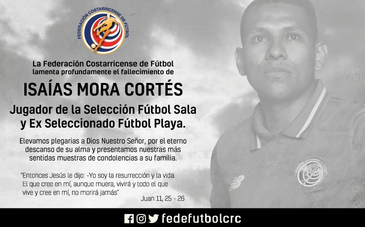 La Federación Costarricense de Fútbol (FEDEFUTBOL) lamenta profundamente el fallecimiento de Isaías Mora Cortés, conocido como “Sayo”, quien en vida fue jugador de la Selección de Fútbol Sala y ex seleccionado de Fútbol Playa.