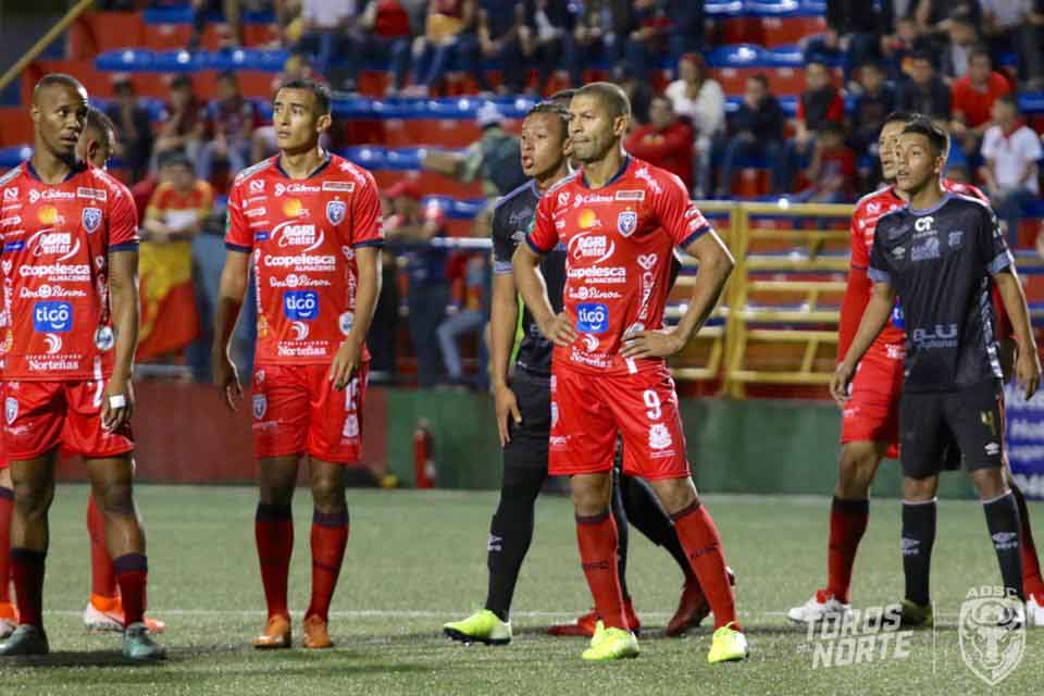 46′ Finaliza la primera parte, la Asociación Deportiva San Carlos empata a cero goles con el Club Sport Herediano.