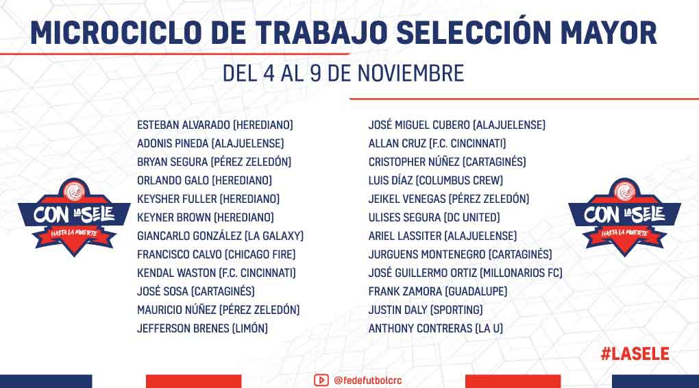 Aprovechando los cambios que realizó la Unafut en su calendario y que los futbolistas que militan en la MLS ya terminaron la temporada, González llamó a 24 jugadores para trabajar con ellos del lunes 4 al sábado 9 de noviembre.