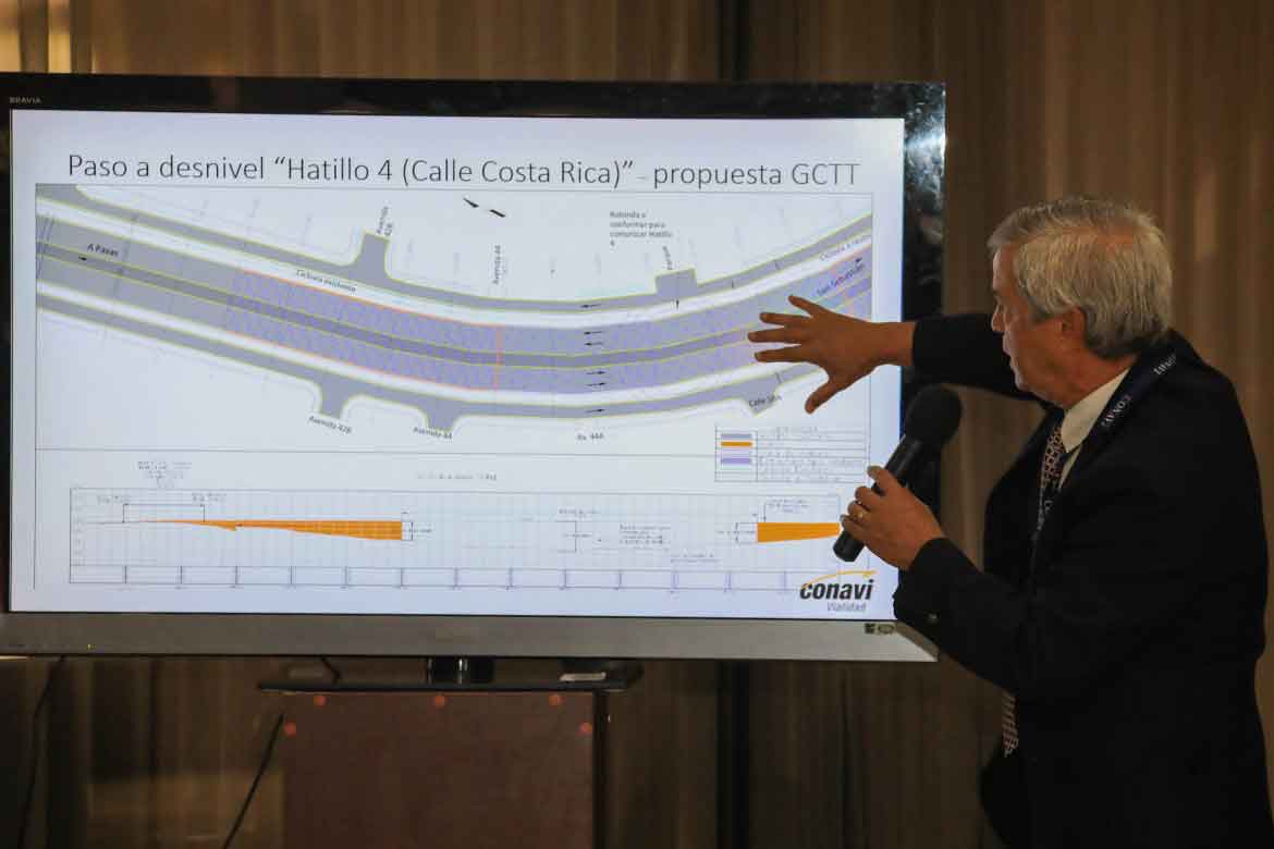 Con el fin de dar una solución a los congestionamientos viales en los cruces de Los Hatillos, donde los usuarios buscan entrar y salir de la Circunvalación o cruzarla transversalmente, el Consejo Nacional de Vialidad (CONAVI) anunció tres intervenciones que permitirán eliminar los semáforos y garantizarán un tránsito fluido en ese sector de la Ruta Nacional 39.