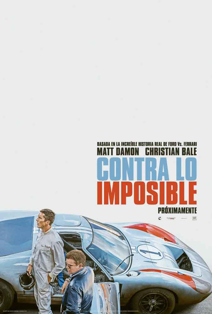 Un relato triunfante, aunque agridulce, extraído de manera directa de la historia, CONTRA LO IMPOSIBLE es protagonizada por el ganador del Premio de la Academia® Matt Damon (The Martian, Jason Bourne), el ganador del Premio de la Academia® Christian Bale (Vice, The Fighter), Jon Bernthal (Baby Driver, Widows), Caitriona Balfe (“Outlander”, Escape Plan), Tracy Letts (Lady Bird, The Big Short), Josh Lucas (“Yellowstone”, Breakthrough), Noah Jupe (A Quiet Place), Remo Girone (Live by Night), Ray McKinnon (“Mayans M.C”.), JJ Feild (Captain America: The Flirt Avenger) y Jack McMullen (“Waterloo Road”).