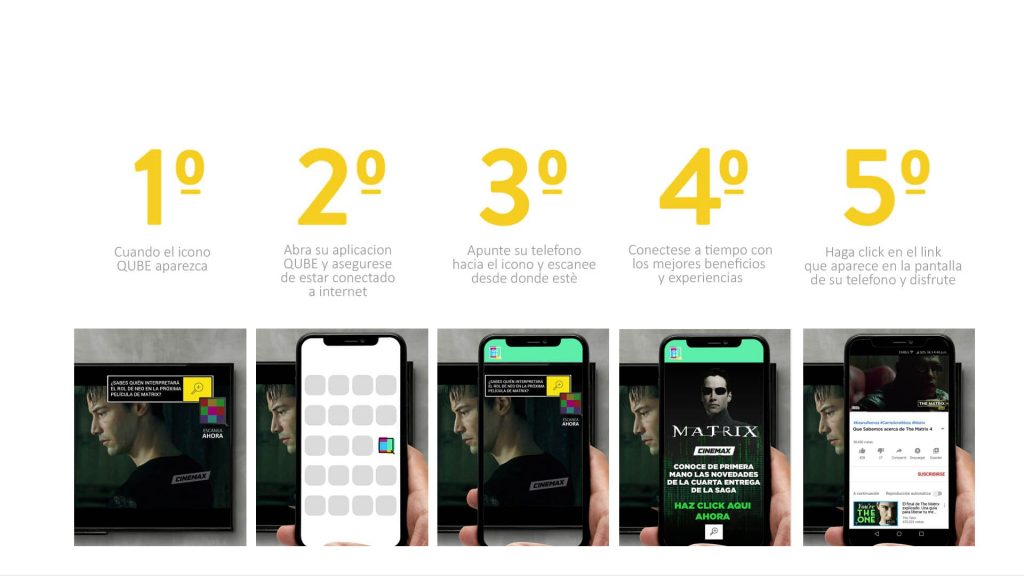 La aplicación, tentativamente llamada “Qube”, permitirá a los espectadores interactuar con el contenido que están viendo en CINEMAX, simplemente escaneando con su dispositivo móvil un marcador de color que aparecerá durante la programación y los comerciales. El escaneo activará rápido acceso a contenido ya sea de CINEMAX o de las marcas presentadas en el canal. Todo el contenido presentado apunta a entregar un valor exclusivo para el espectador. Ejemplos de experiencias pueden incluir cupones de descuento, pre ventas de productos y servicios, storytelling, contenido editorial, contenido detrás de cámaras y mucho más.