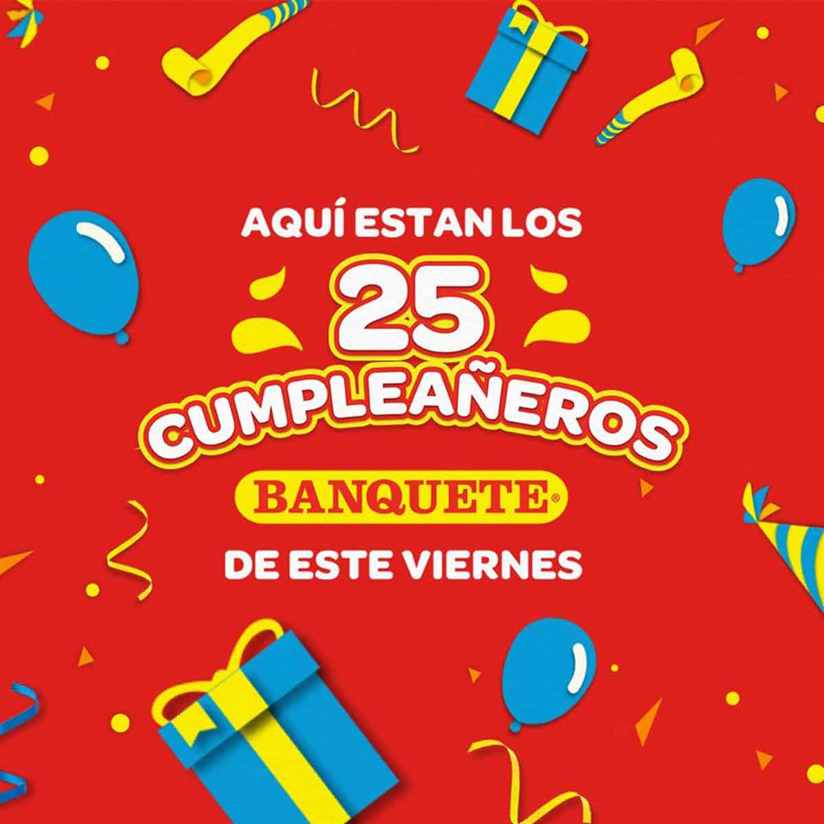 Este año, Banquete quiere seguir celebrando el cumpleaños de los ticos, haciéndolo por medio de Cumples Virtuales. Para participar los cumpleañeros mayores de edad, de marzo, abril y mayo deberán ingresar al Facebook de Banquete Oficial, comentar el posteo del Cumple Virtual y agregar el hashtag #CumpleañeroBanquete. Entre los primeros 100 que comenten en el post y comprueben que cumplieron o cumplirán años durante la cuarentena, se escogerán 25 cumpleañeros, quienes participarán en vivo en el Cumple Virtual Banquete.