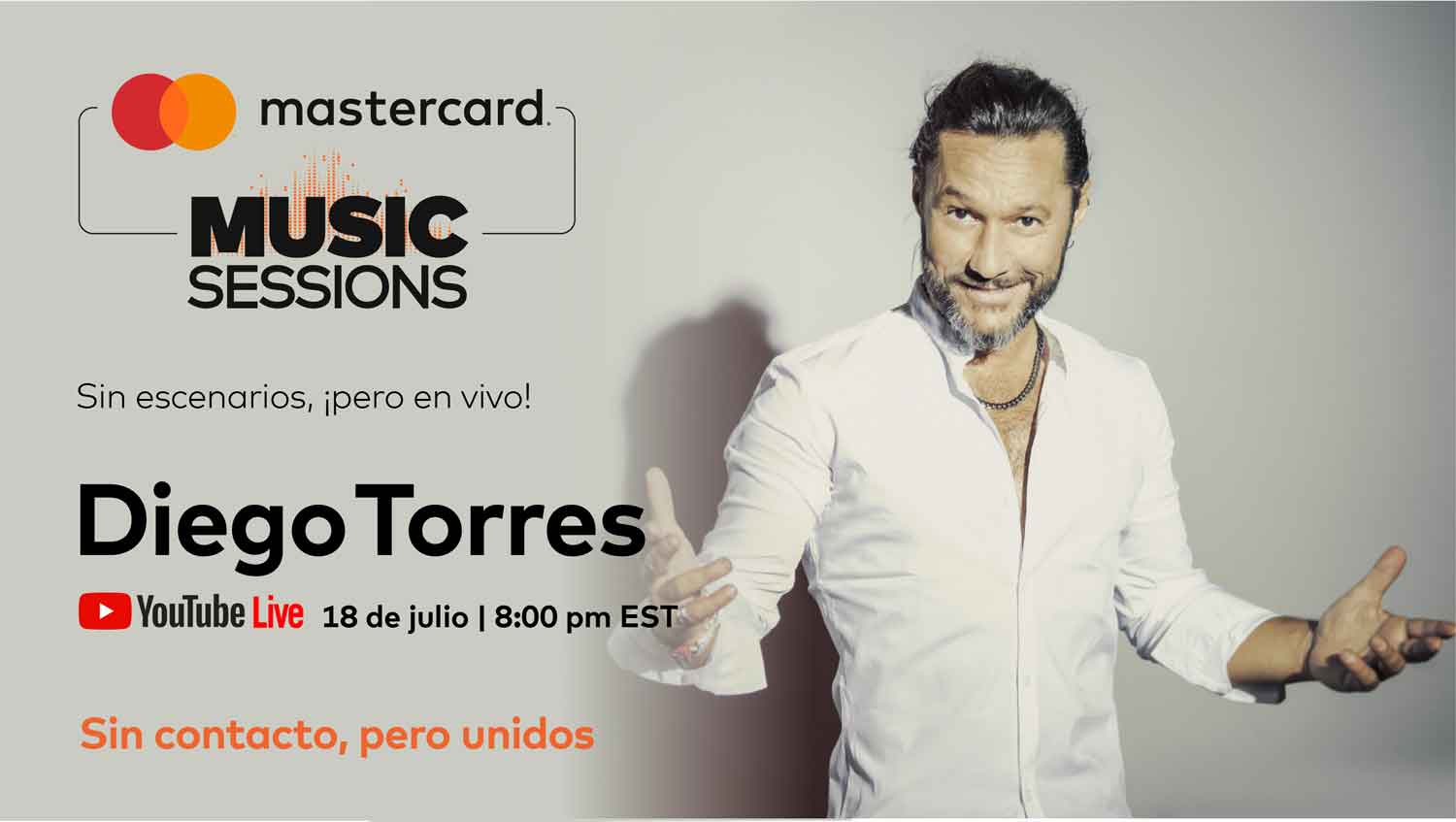La sesión acústica se llevará a cabo el 18 de julio y contará con la presentación de Diego Torres cantando sus hits más populares.