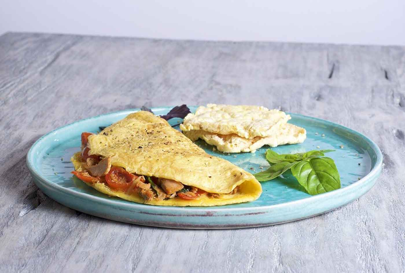 3 Batir los huevos, agregar sal y pimienta al gusto y en una sartén con un poco de aceite de oliva, preparar los omelettes.