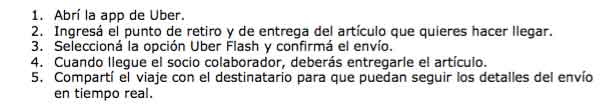 Con Uber Flash podés enviar artículos pequeños y medianos que quepan en un vehículo de UberX. Recordá que ahora el pago también lo podés hacer en efectivo.