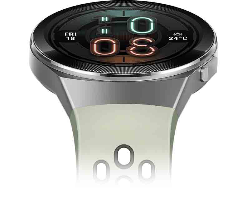 El duradero marco de acero inoxidable del HUAWEI WATCH GT 2e combina perfectamente con las coloridas correas fitness para un agarre cómodo. La vibrante pantalla AMOLED HD de 1.39 pulgadas y la gran variedad de carátulas digitales te mantienen conectado a tu mundo.