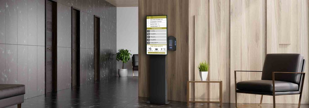 Quiosco Health Flex EP2710-B1: viene con un display de 27 pulgadas, reproductor multimedia y soporte para dispensador de desinfectante de manos: