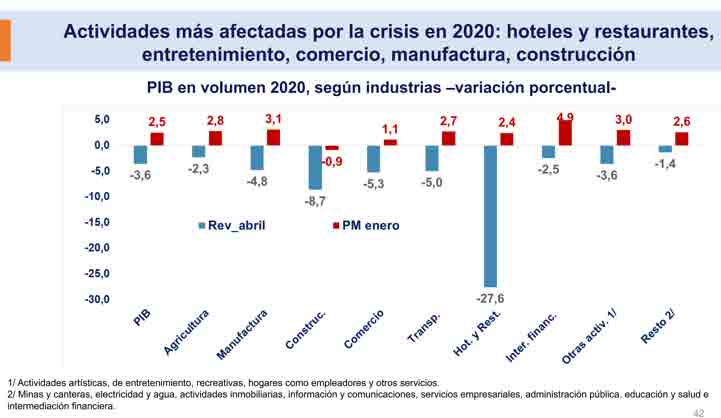 Adicionalmente, el mismo BCCR estima una reducción del consumo de los hogares y una variación porcentual negativa del PIB en volumen, siendo hoteles y restaurantes la actividad económica con mayor impacto.