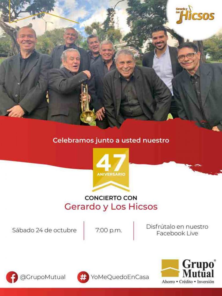Con un concierto virtual de Gerardo y Los Hicsos, Grupo Mutual celebrará su 47 aniversario brindando bienestar y soluciones financieras en nuestro país. La actividad se realizará el sábado 24 de octubre, a las 7:00 p.m. por transmisión en vivo desde su página de facebook Grupo Mutual.