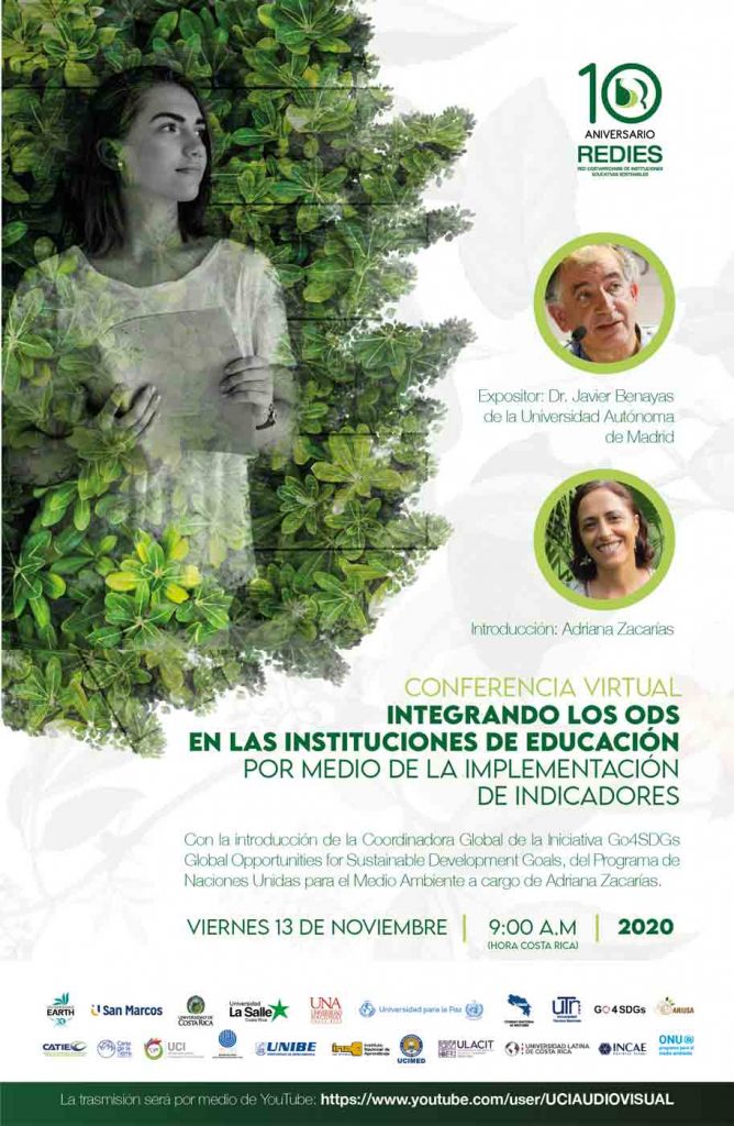 “Este año y con motivo del 10° aniversario de REDIES, realizaremos la conferencia virtual ‘Integrando ODS en las instituciones de educación superior’, que pretende ofrecer alternativas de la incorporación de los Objetivos del Desarrollo Sostenible (ODS) por medio de indicadores para monitorear su implementación en las instituciones de educación superior. Adicionalmente, promoveremos las herramientas que ha dispuesto el programa Go4SDGs de la ONU Ambiente dirigidos a redes de jóvenes y universidades en un esfuerzo por incorporar los variables ambientales a las áreas sustantivas de las universidades y organizaciones”, indicó Arguedas.