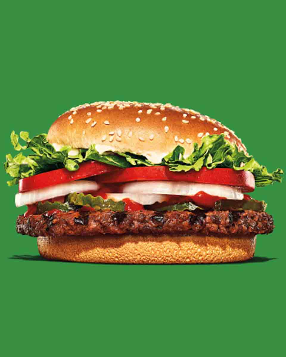Se trata de una jugosa hamburguesa con una torta vegetal ¡con sabor a carne!, hecha a base de: soya, proteína de trigo, almidón de trigo, aceite de girasol, aceites vegetales, extracto de cebada y aromas naturales. Además, se complementa por ingredientes tradicionales como: lechuga recién cortada, tomates frescos, riquísimos pepinillos y cebolla en rodajas ¡con el mismo delicioso sabor y textura del Whopper Clásico!