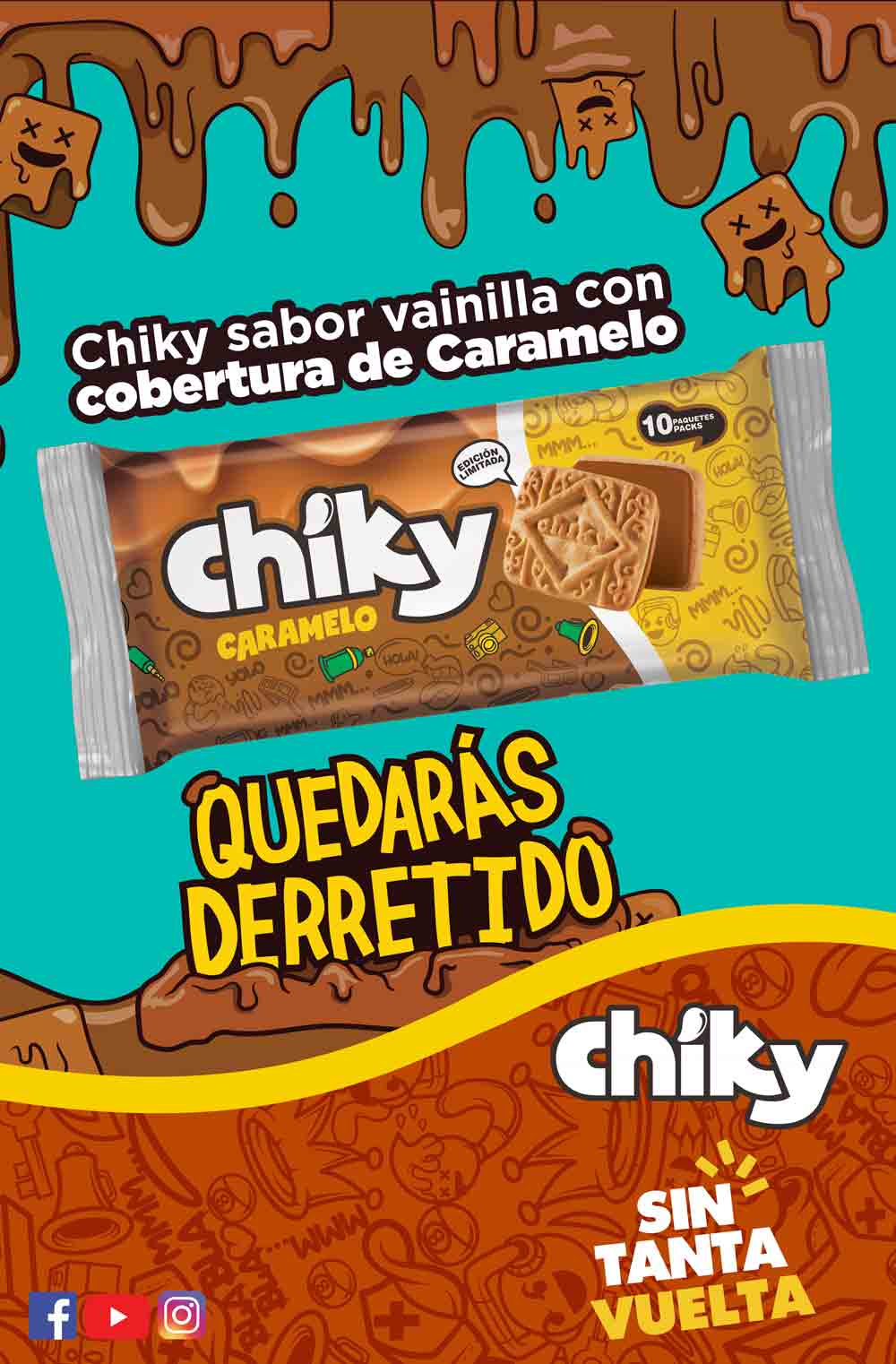 No cabe duda que, desde siempre, el nombre Chiky despierta la atención y atrae el deseo de quienes se han dejado cautivar por sus deliciosas galletas de vainilla, cuya nueva presentación, ahora cubierta de caramelo, combina a la perfección lo tradicionalmente apetecido con lo exquisitamente novedoso.