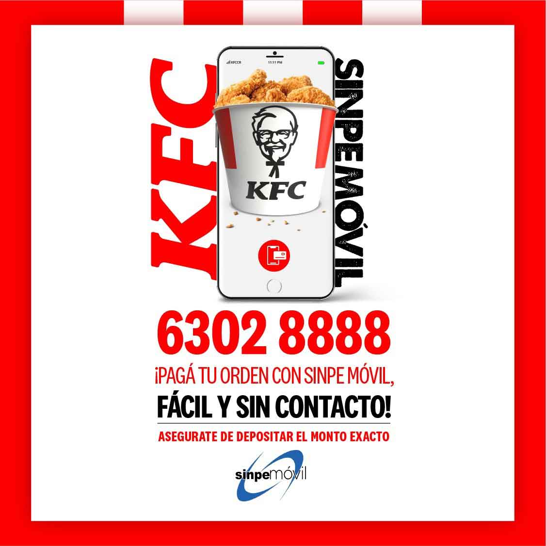 Mayo, 2021. La franquicia de comida rápida, KFC, constantemente se encuentra innovando por medio de distintas plataformas digitales, esta vez les da la posibilidad a sus clientes de realizar los pagos de una forma sencilla por medio de SINPE móvil.
