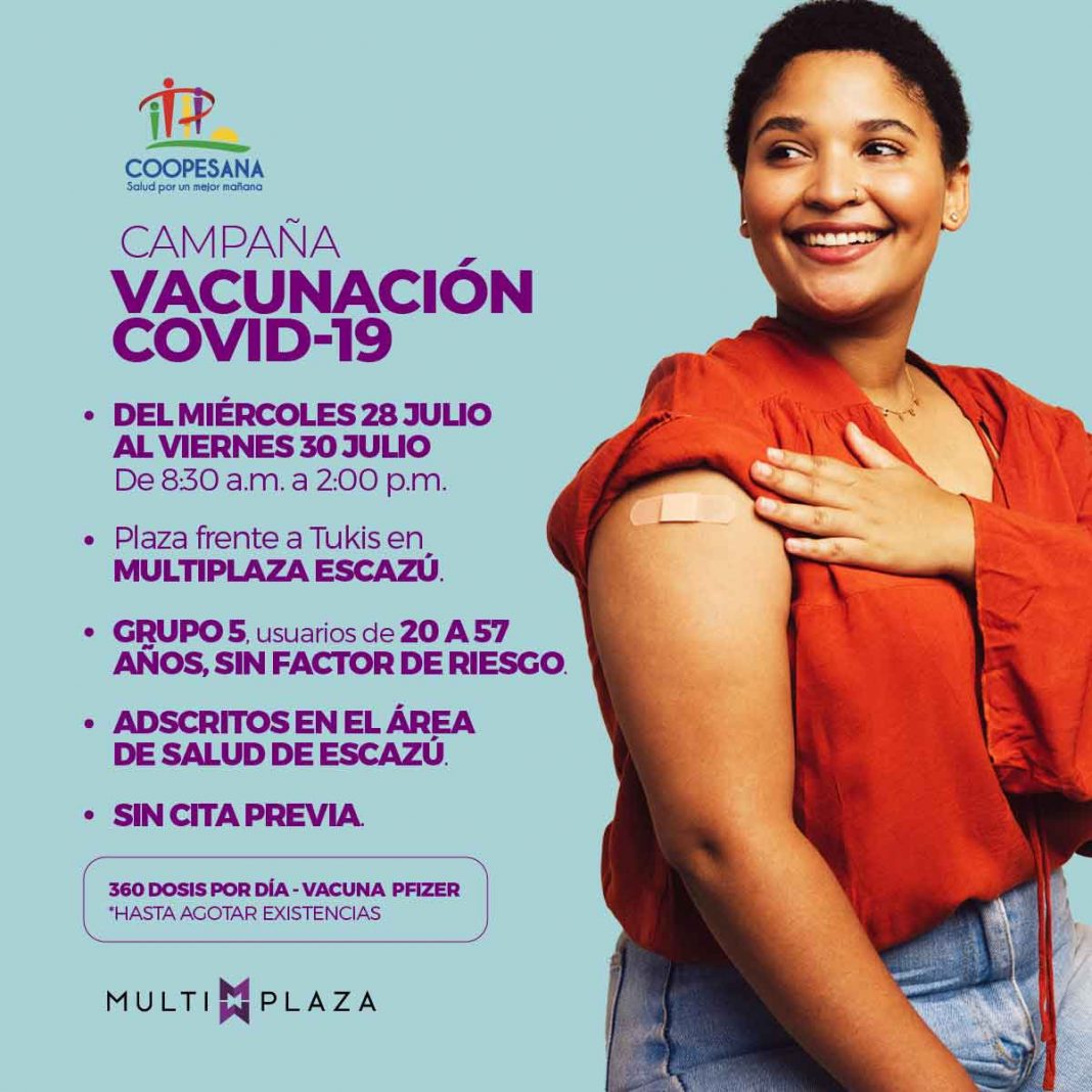 COOPESANA, administradora de dicha Área de Salud, asegura que estarán atendiendo a personas del grupo de vacunación 5 sin factores de riesgo que cumplan con los requisitos descritos anteriormente, al igual que a embarazadas sin importar el mes de gestación con o sin factores de riesgo.