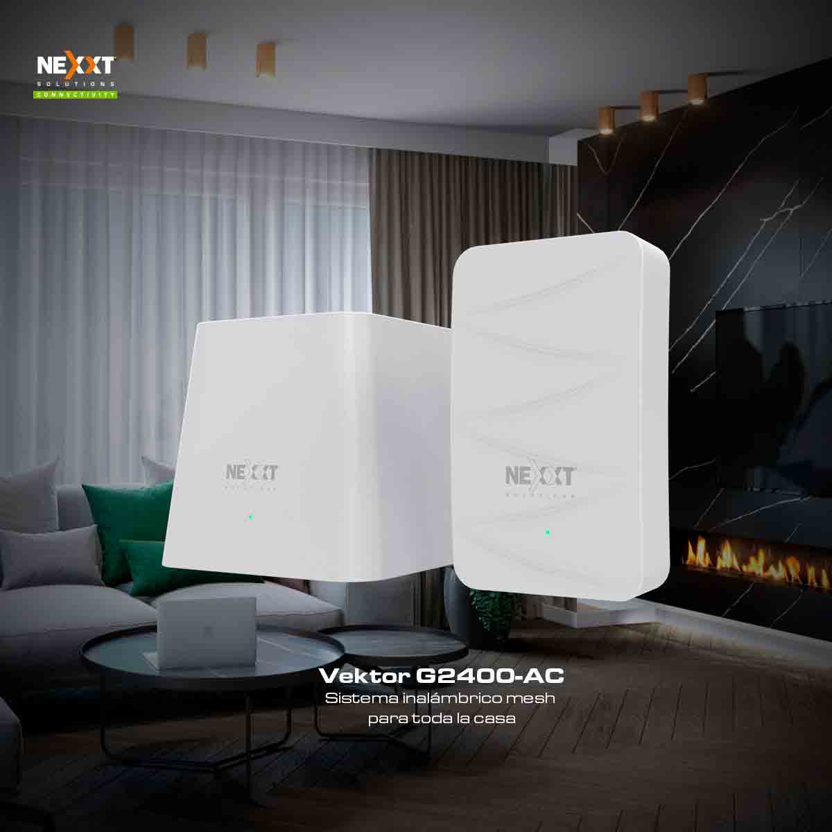 Los Vektores Mesh ofrecen conectividad Wi-Fi eficiente que cubre todos los rincones del hogar u oficina, no importando si es de uno o dos niveles. Gracias a su tecnología, los vektores Mesh reducen los puntos muertos del router Wi-Fi, mejorando el rango de cobertura en el lugar.