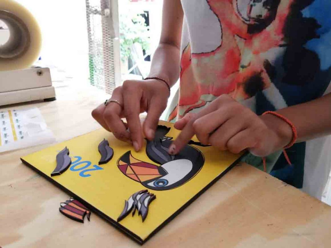 Los rompecabezas son confeccionados en el FabLAB del SIFAIS, ubicado en la comunidad de La Carpio; por su parte, las bolsas reutilizables son elaboradas por un grupo de mujeres de Fundación DEHVI, quienes encontraron un oficio realizando este producto con lonas y textiles de segunda mano.
