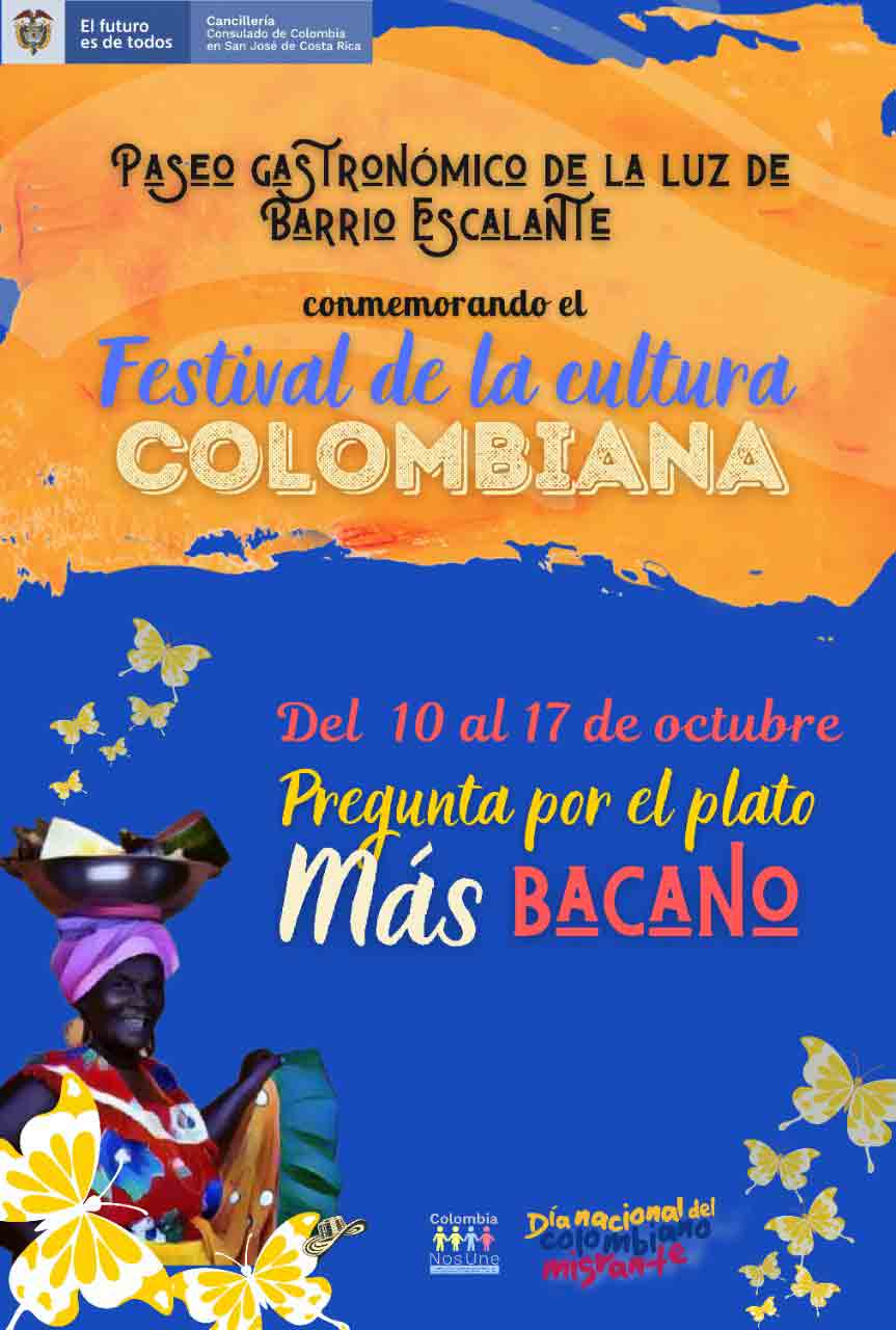 San José. Octubre, 2021. Disfrutar y celebrar de la buena gastronomía colombiana y conmemorar el Día del Colombiano Migrante, son los objetivos de “Descubre Escalante, Descubre Colombia”, un festival gastronómico que se llevará a cabo del 10 al 17 de ocubre en el Paseo Gastronómico La Luz de Barrio Escalante.