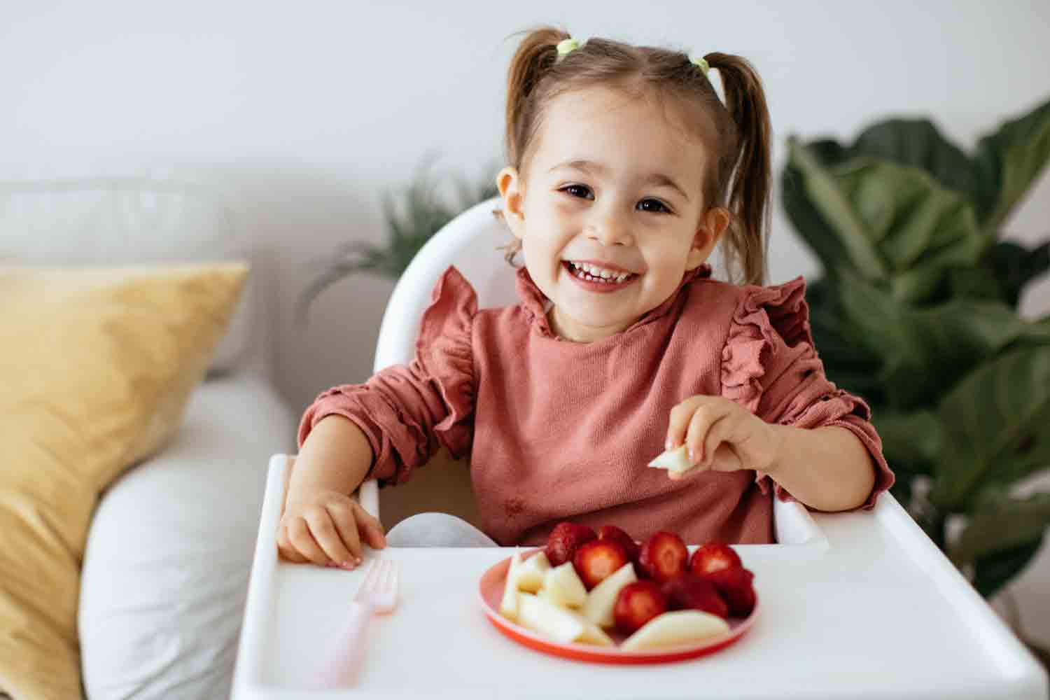 - Brindar alimentos majados, ofreciendo inicialmente alimentos que el niño o la niña pueda sujetar con su mano. Importante considerar el tamaño y textura de los alimentos para evitar que el niño se atore.