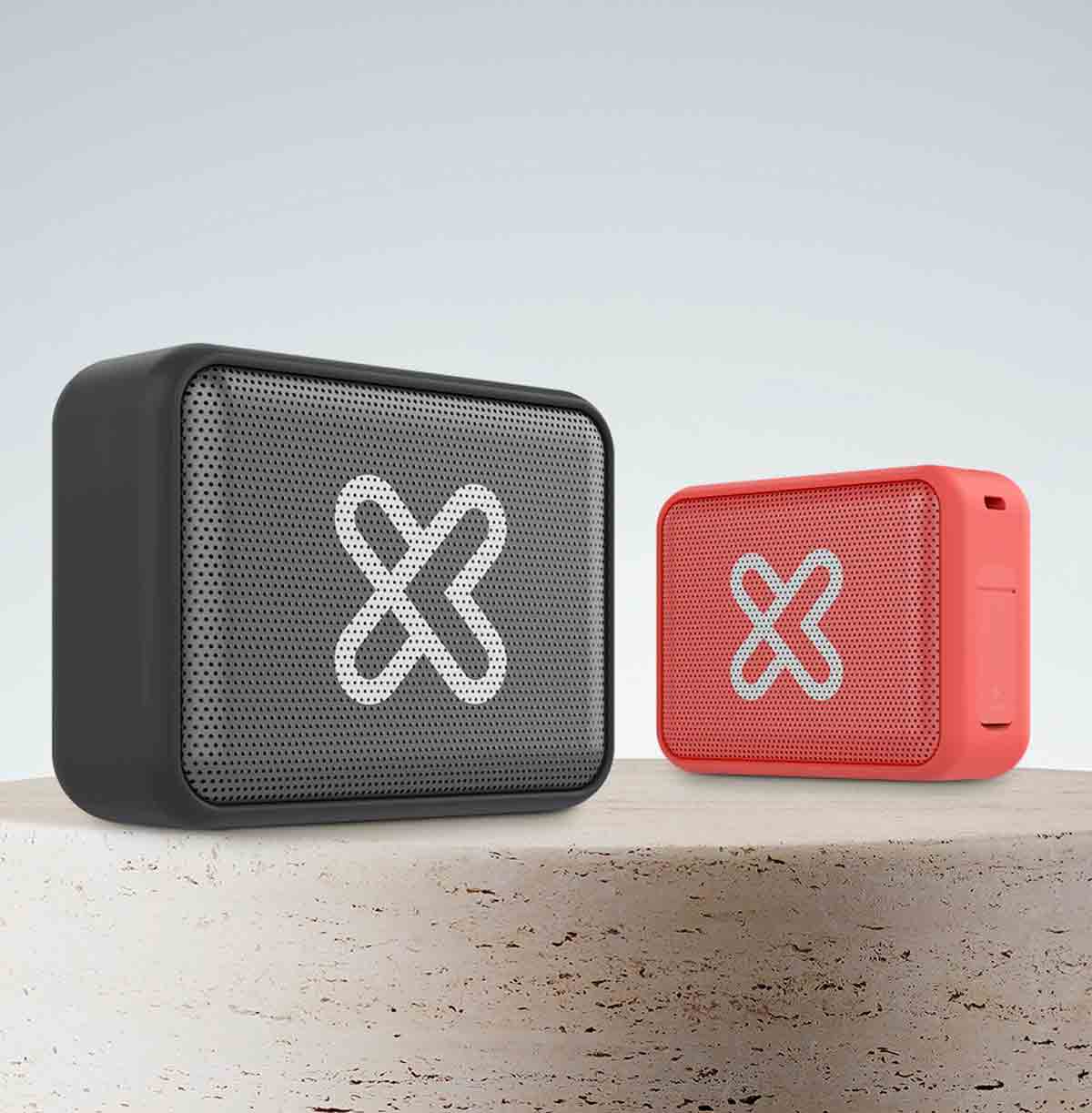 Bocina inalámbrica vibe360°. Este parlante es como tener dos parlantes en uno solo. Al separar las bocinas, el usuario obtiene dos parlantes. Es posible alejarlos más de 10 metros uno del otro, o de lo contrario vivir una experiencia estéreo al tener dos parlantes que se sincronizan de forma automática, gracias a la tecnología TWS. Además, es a prueba de aguas.