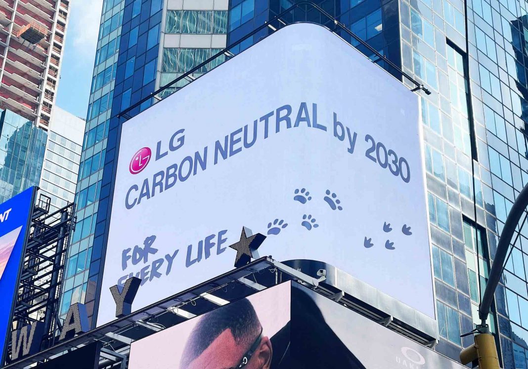 Inspirado en el mensaje de la marca Life’s Good for All Lives, LG comparte un mensaje en Times Square, Nueva York, en el cual muestra un contenido llamativo en 3D que transmite el mensaje de que la vida es mejor cuando cuidamos nuestro medio ambiente. Esta exposición forma parte del fascinante programa digital donde no solo se destaca la importancia del compromiso de Zero Carbon 2030, sino que hace un llamado a las personas exponiendo que el cambio climático no es solo un problema humano, sino un tema que afecta a todos los organismos vivos en la Tierra.