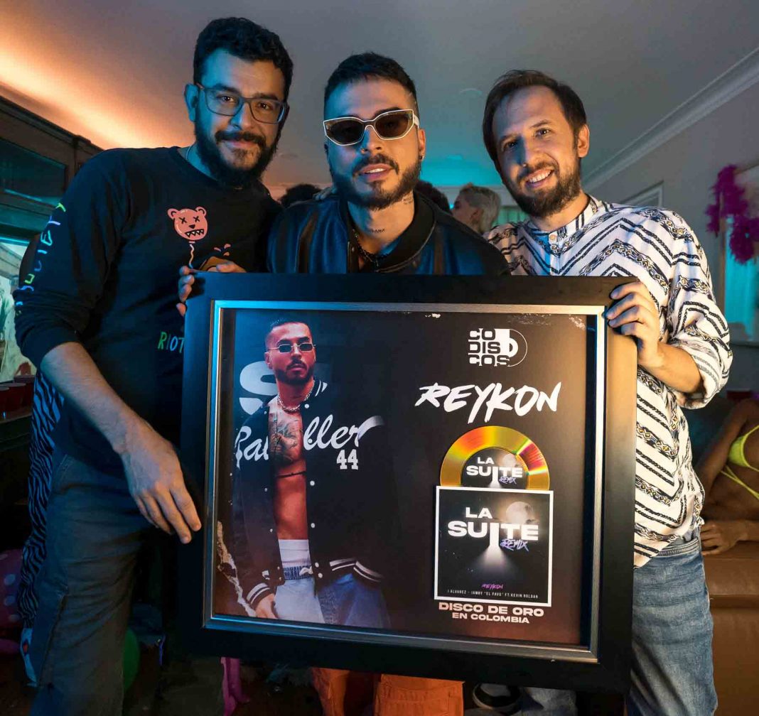 CARACAS, mayo 2022 – Por exitosas ventas digitales en Colombia, el reconocido cantante antioqueño Reykon recibió el pasado miércoles 20 de abril Disco de Oro por su reciente lanzamiento “La Suite Remix”. El Presidente de Codiscos, Andrés Ovalle, entregó el importante reconocimiento que da cuenta del impacto de este hit en plataformas digitales del hermano país.