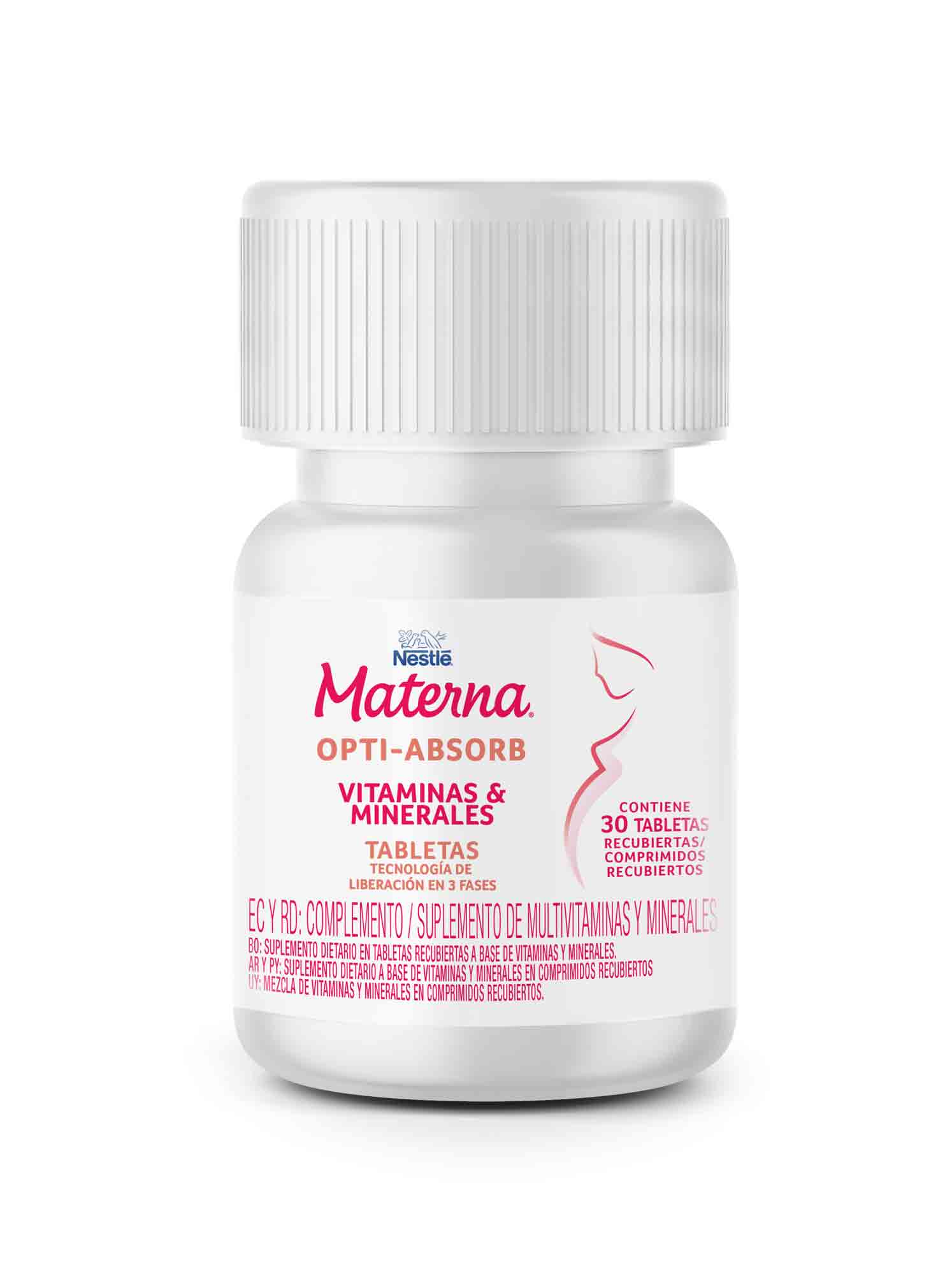 El nuevo multivitamínico MATERNA® Opti- Absorb de Nestlé es un suplemento saludable y equilibrado, pues cuenta con una combinación de dos tipos de hierro que se absorben fácilmente, aumentando así su eficiencia. Asimismo, contiene cantidades adecuadas de otras vitaminas y minerales también requeridos en esta etapa, sin exceder la dosis diaria.