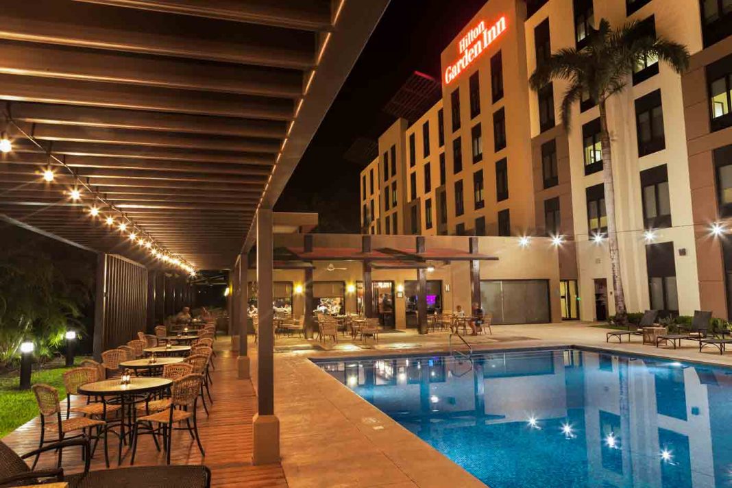 El Hilton Garden Inn está equipado con piscina, restaurante y gimnasio, además destaca por sus aires modernos, con comodidades para atender tanto a turistas que visitan la zona por negocio como por placer.