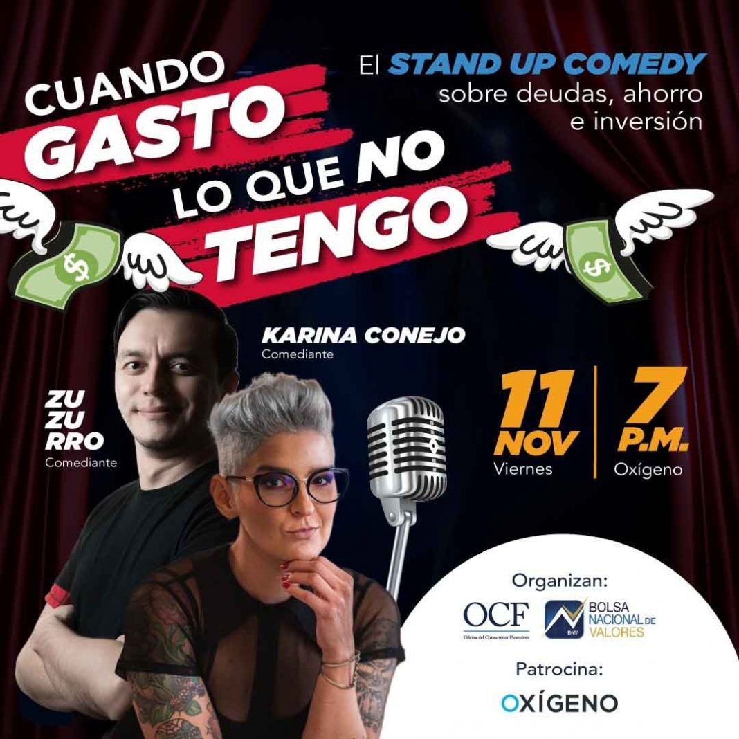 La Bolsa Nacional de Valores (BNV) y la Oficina del Consumidor Financiero (OCF) anuncian el lanzamiento de la gira de Stand up comedy “Cuando gasto lo que no tengo”, a cargo de los comediantes Karina Conejo y Juan Pablo Zúñiga, mejor conocido como “Zuzurro”.