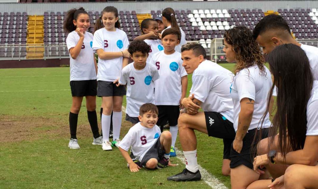 San José, Costa Rica. 18 de noviembre de 2022. Niñas, niños y jugadores de Primera División masculina y femenina del Deportivo Saprissa se unieron en el marco del Día Mundial de la Infancia para grabar un video para convocar a todas las personas habitantes de Costa Rica a conformar el equipo ganador en el campeonato mundial del respeto a los derechos de la niñez, con énfasis en equidad, la inclusión y la no discriminación.