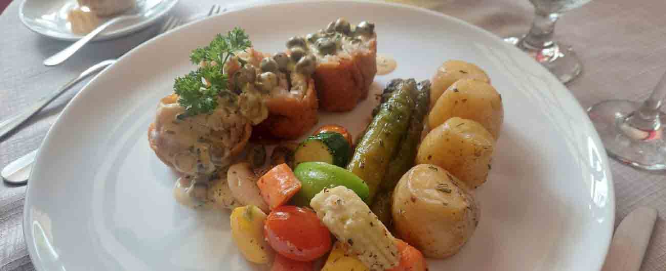 El chef ha preparado un menú especial que consiste en una entrada de crema de zanahorias o ensalada César, plato principal a elegir entre rollo de pechuga (espinacas y tocineta) en salsa teriyaki, acompañado de arroz a la jardinera y ensalada o corvina en salsa de alcaparras, acompañada de rodajas de papas en pomodoro y mini vegetales. Para el postre lo espera un delicioso cheesecake de maní y caramelo.