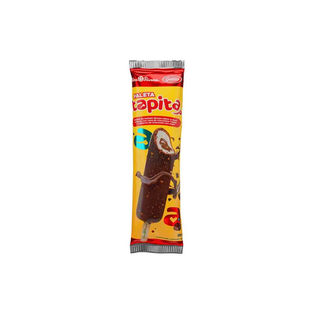 La Paleta de helado Gallito Tapita es un producto que estará disponible por tiempo limitado, en presentación de 85 gramos. Esta deliciosa paleta combina el helado lácteo con sabor a maní, relleno con veta de chocolate Tapita y cubierto de chocolate con maní.