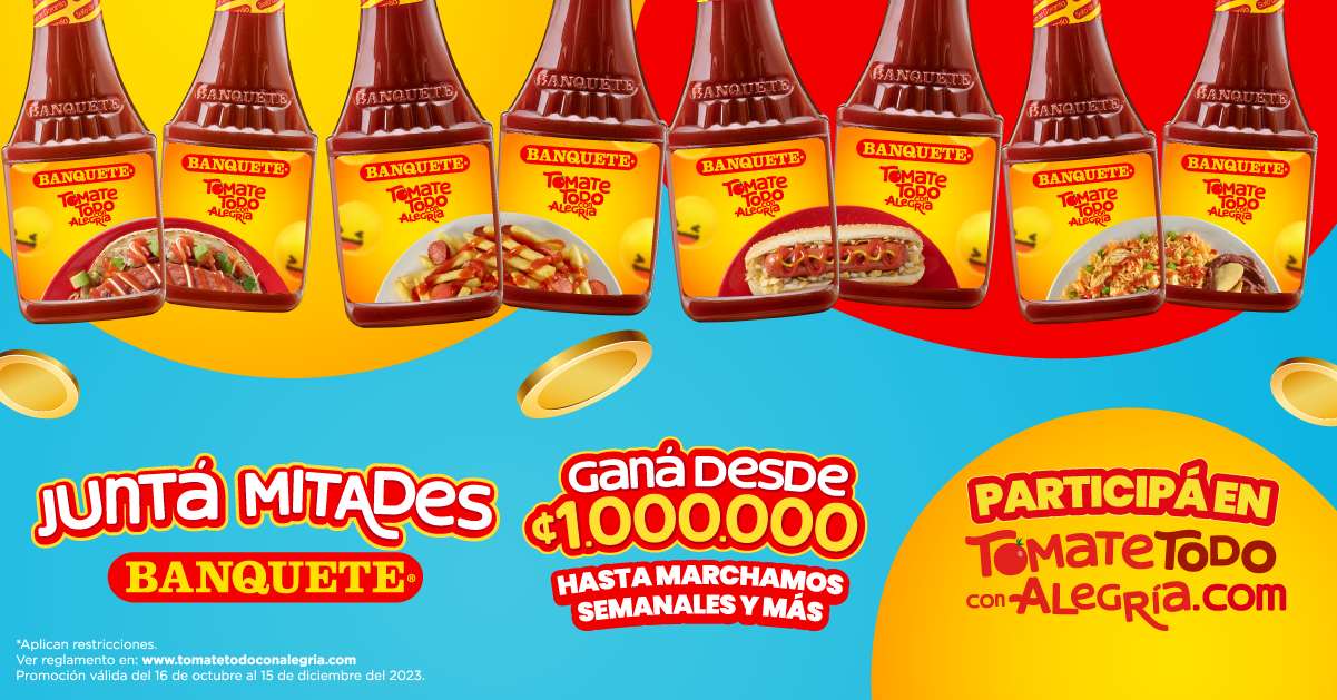 Banquete, la salsa de tomate preferida de los ticos, quiere celebrar los últimos meses del año regalando más de 290 premios mediante la dinámica “Juntá Mitades”. Donde se sortearán ocho vales por un ₡1.000.000, ocho marchamos, 40 tarjetas de regalo de ₡100.000 y 120 de ₡50.000 y 120 canastas de productos de la marca. Los ganadores se darán a conocer semanalmente.