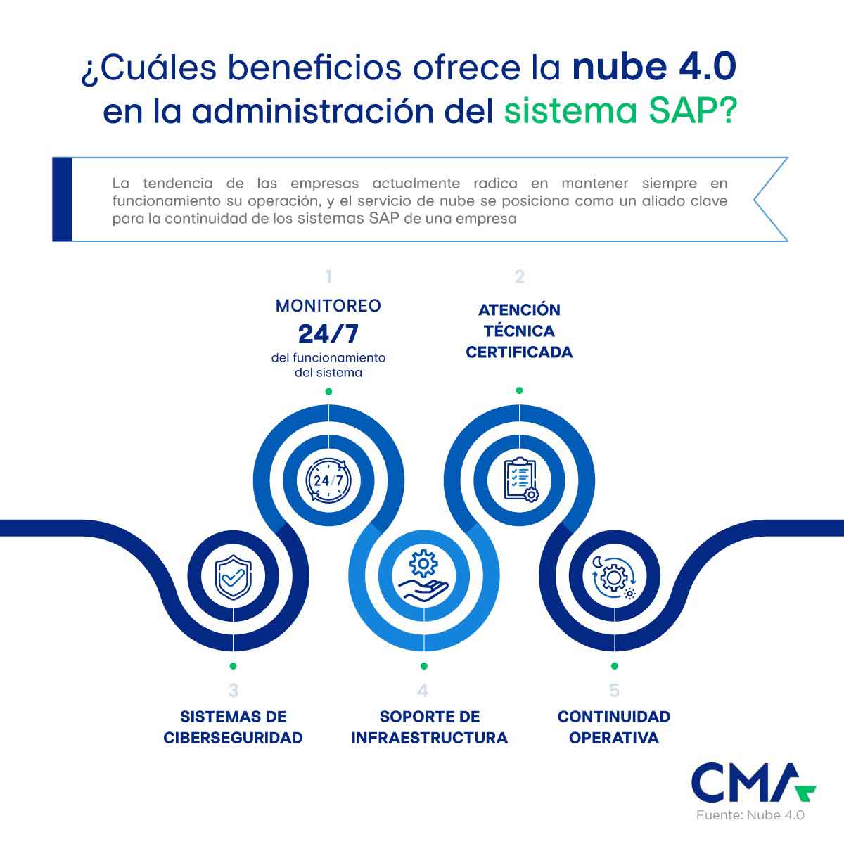 CMA, en alianza con diferentes partners de SAP, como Clavis.co y Logical Data, brinda el servicio de soporte en NUBE 4.0, cuyos principales beneficios son: