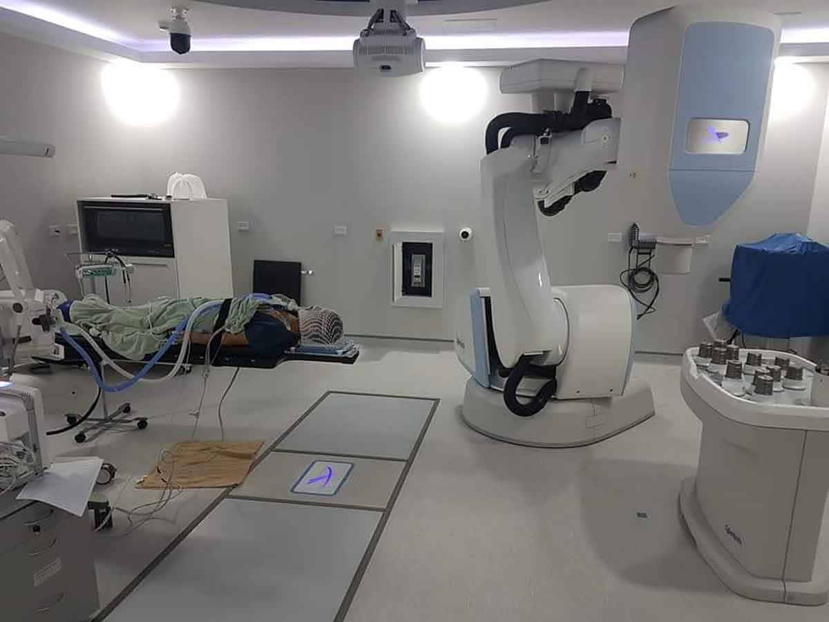 La Radiocirugía Robótica es un tipo de tratamiento que utiliza radiación de alta intensidad, pero suministrada a través de un equipo de alta tecnología de forma robótica, conocido como CyberKnife. Este equipo lo que hace es otorgar esta radiación de una forma muy precisa, considerada sub-milimétrica, al paciente, permitiendo irradiar únicamente el tumor sin afectar los órganos sanos cercanos.