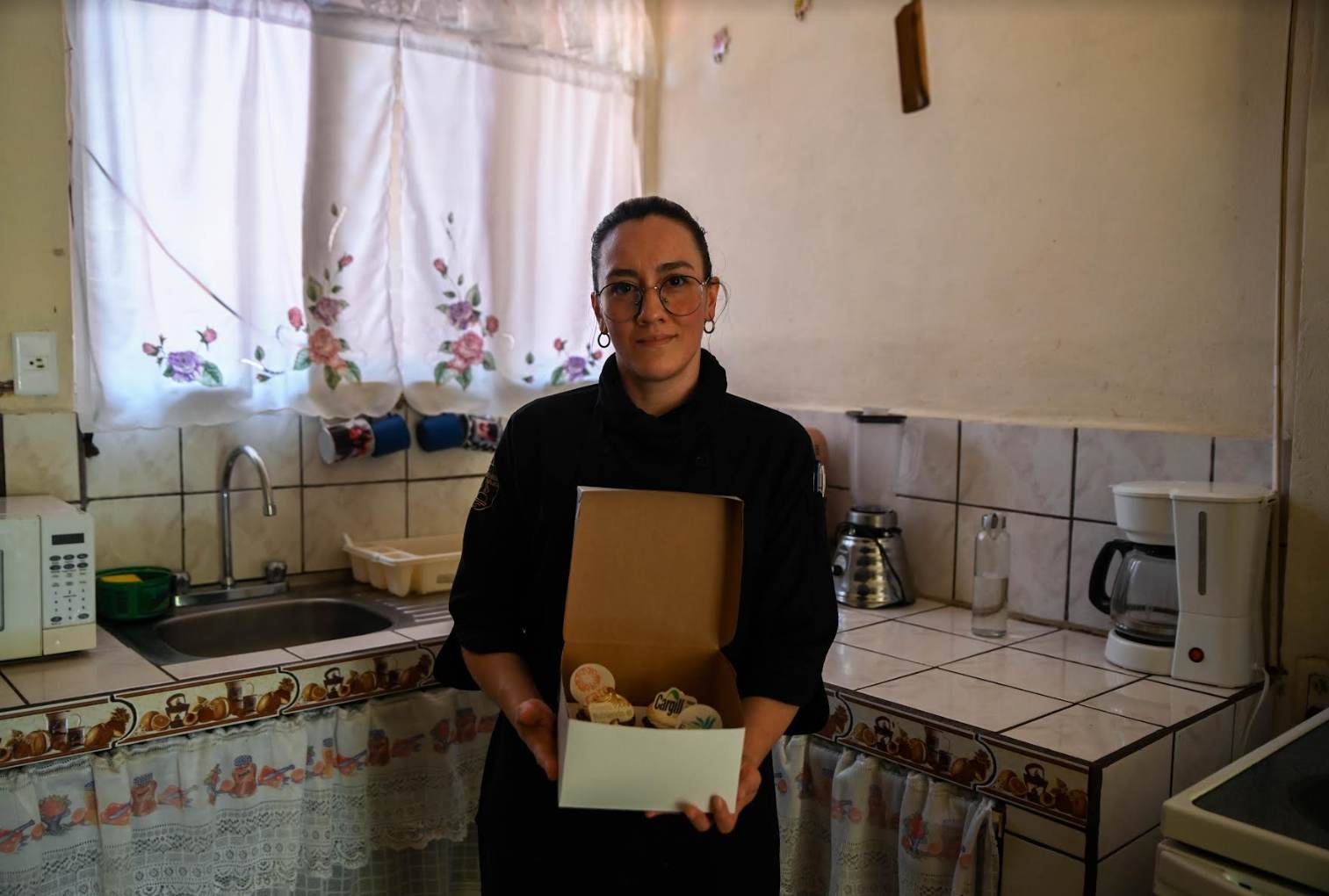 Maily trabaja en las noches, cuando sus dos hijos y su madre están durmiendo, hornea pasteles, bocadillos y pan que después vende en su comunidad, así es como genera una fuente de ingresos para sustentar a su familia y salir adelante.