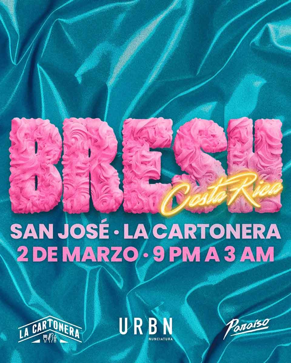 San José, Costa Rica. La espera ha terminado, Bresh, “la fiesta más linda del mundo” se realizará por primera vez en Costa Rica el próximo 2 de marzo en La Cartonera, Lindora.