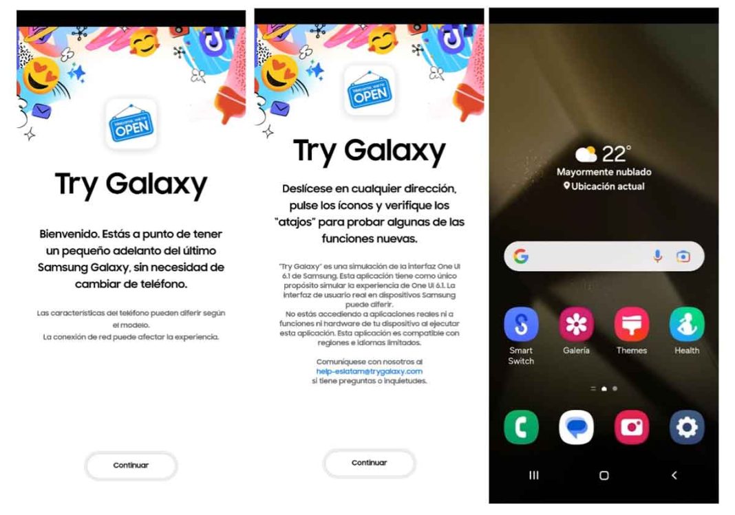 Para descargar Try Galaxy, vaya a https://eslatam.trygalaxy.com/.