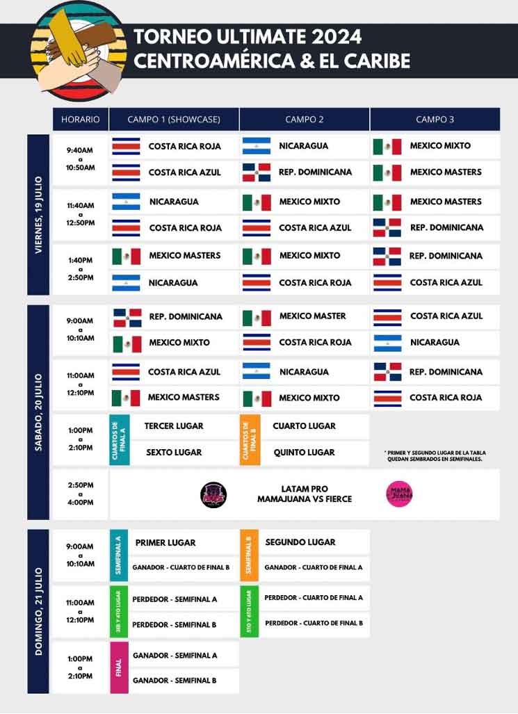 17 julio, San José, Costa Rica. Este viernes 19 de julio inicia el Campeonato Centroamericano y del Caribe de Ultimate Frisbee, organizado por la Asociación Deportiva de Disco Volador. El certamen que se extenderá hasta el 21 del mes, reunirá a dos selecciones de Costa Rica, dos de México, una de República Dominicana, Panamá y Nicaragua, y se realizará desde las 9 de la mañana todos los días en Hacienda Los Reyes, en la Guácima de Alajuela.